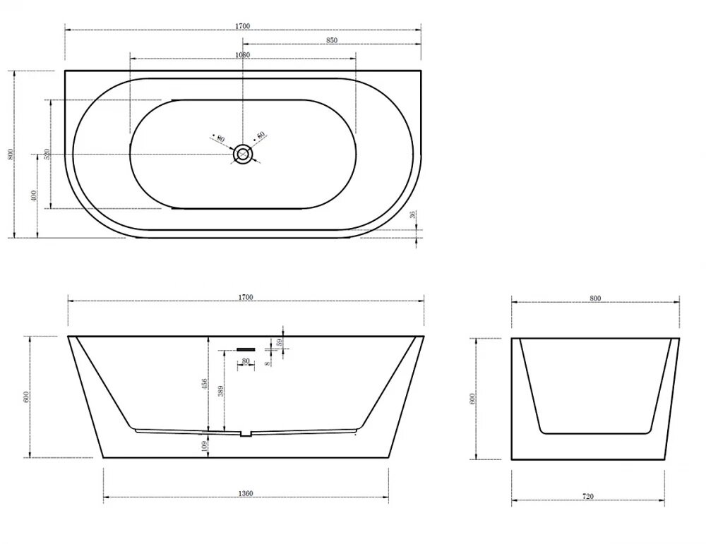 Ванна акриловая пристенная ABBER AB9216 170x80