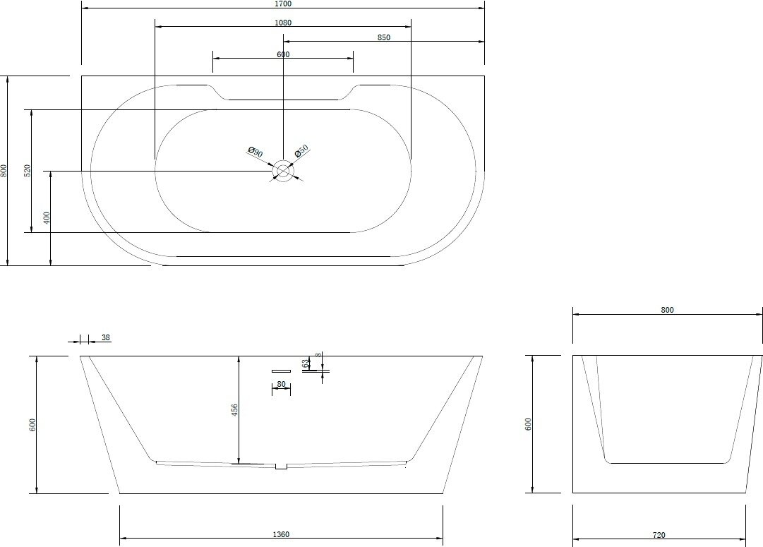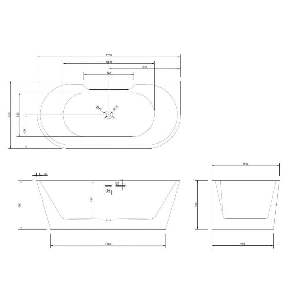 Акриловая ванна Abber 170x80, универсальная (AB9296-1.7)