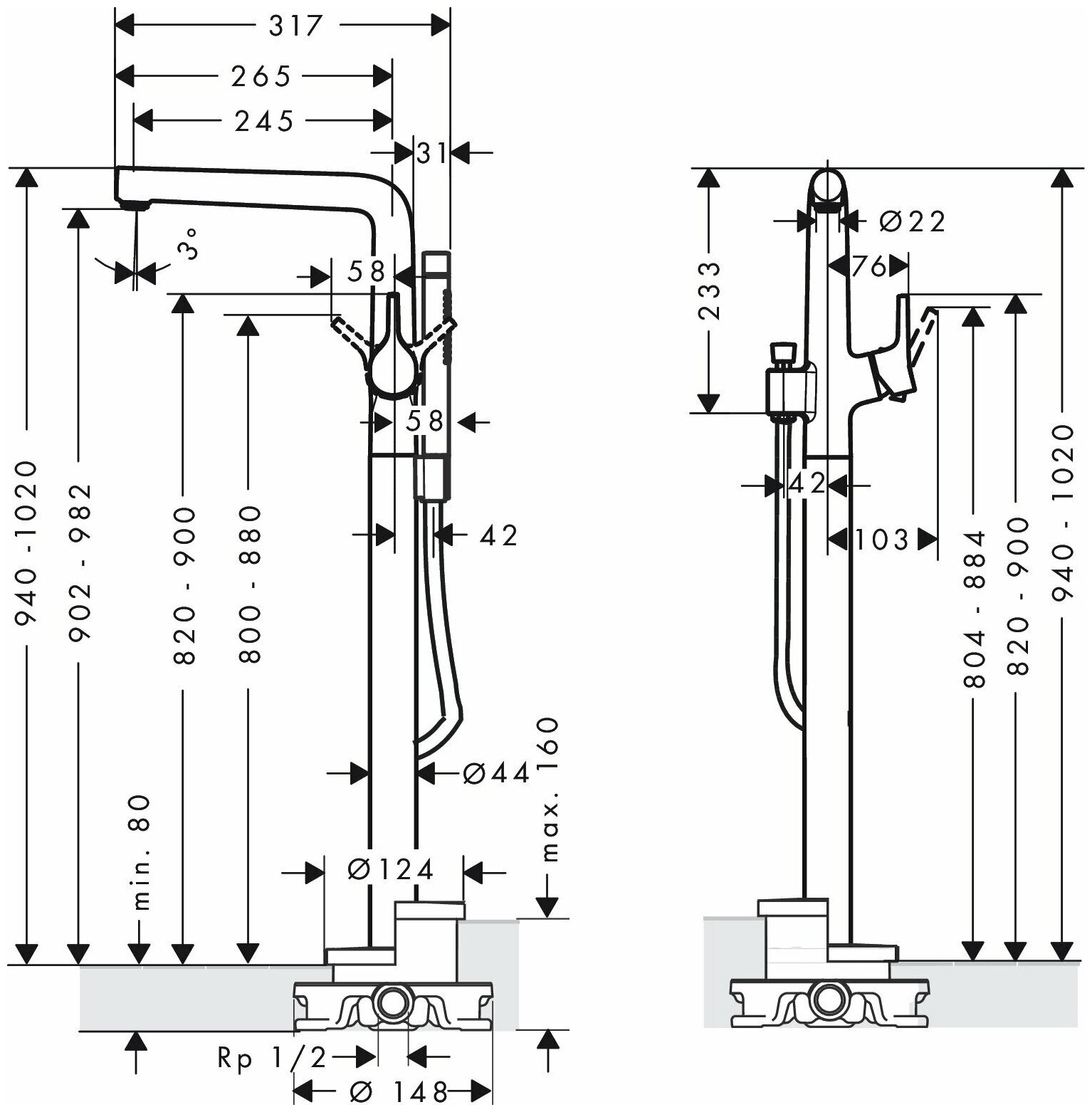 Talis S Смеситель для ванны однорычажный напольный, 72412000