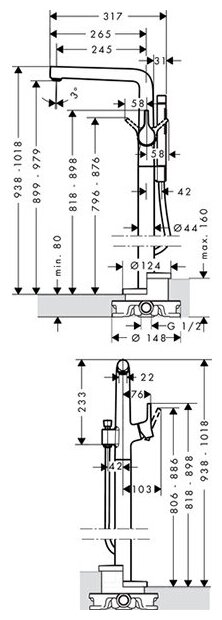 | Высота излива | 979 мм |