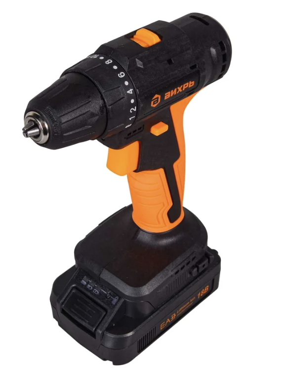 Дрель-шуруповерт Вихрь ДА-18Л-2К/Б оранжево-черный
