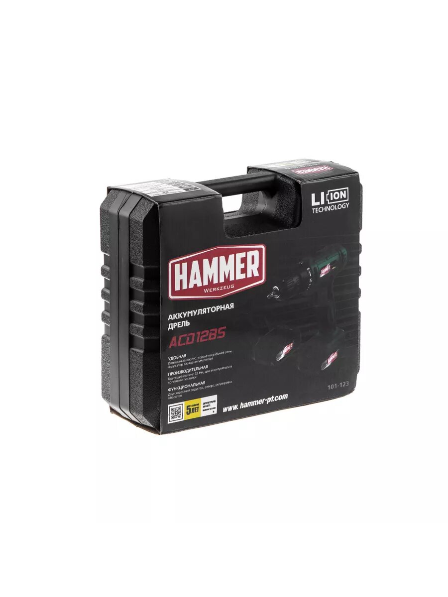 Шуруповерт аккумуляторный HAMMER ACD12BS, в кейсе, 2 акк. Li-ion, 12В, 32 Нм