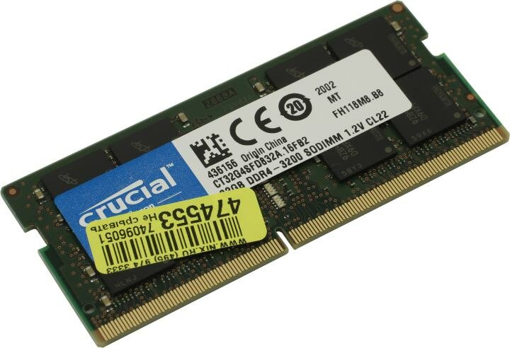 СохранитьОперативная память Crucial SO-DIMM DDR4 32Gb 3200MHz pc-25600 (CT32G4SFD832A) интересное: