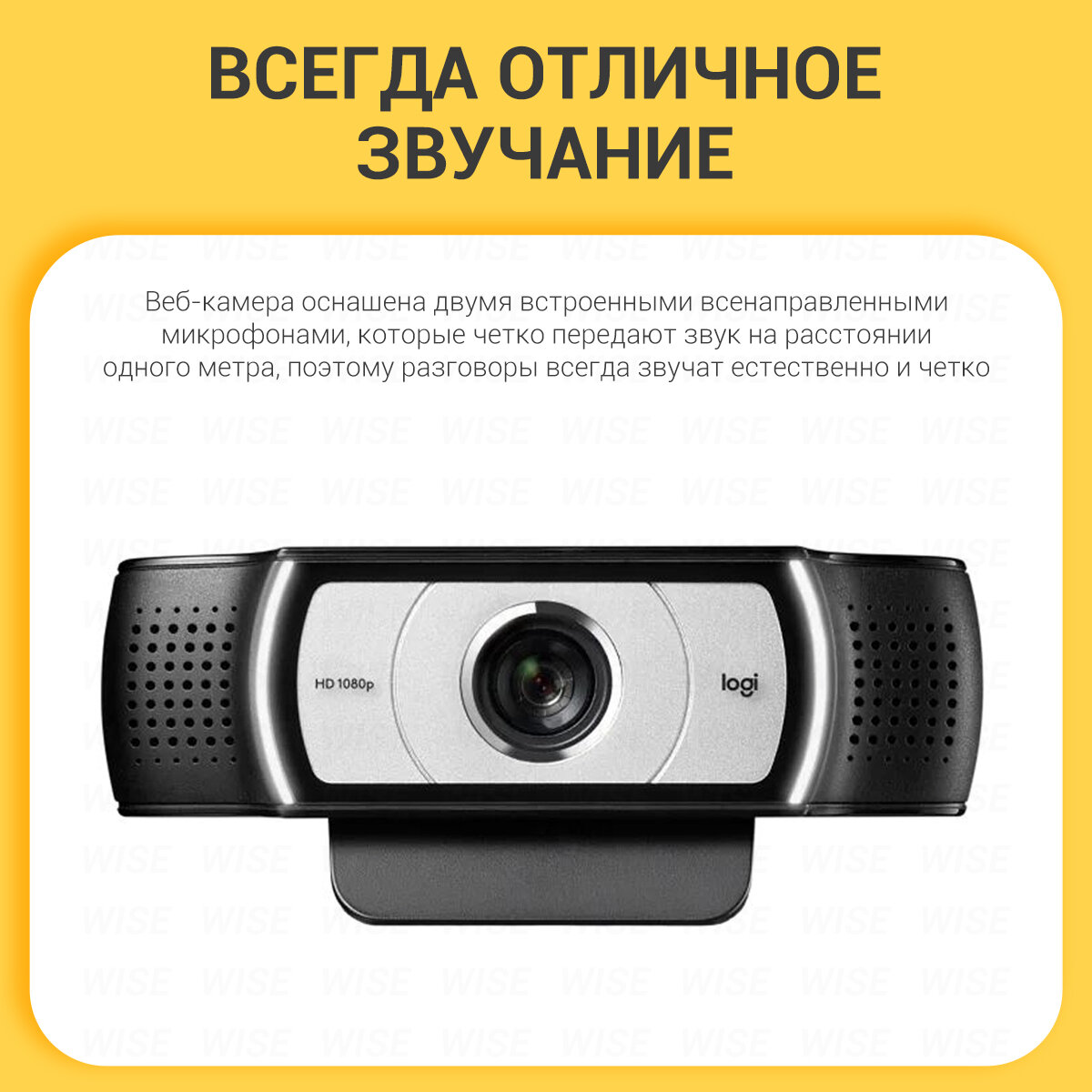 Веб-камера Logitech HD Webcam C930c, черный/серебристый,Разрешение Full HD 1080p,Автокадрирование