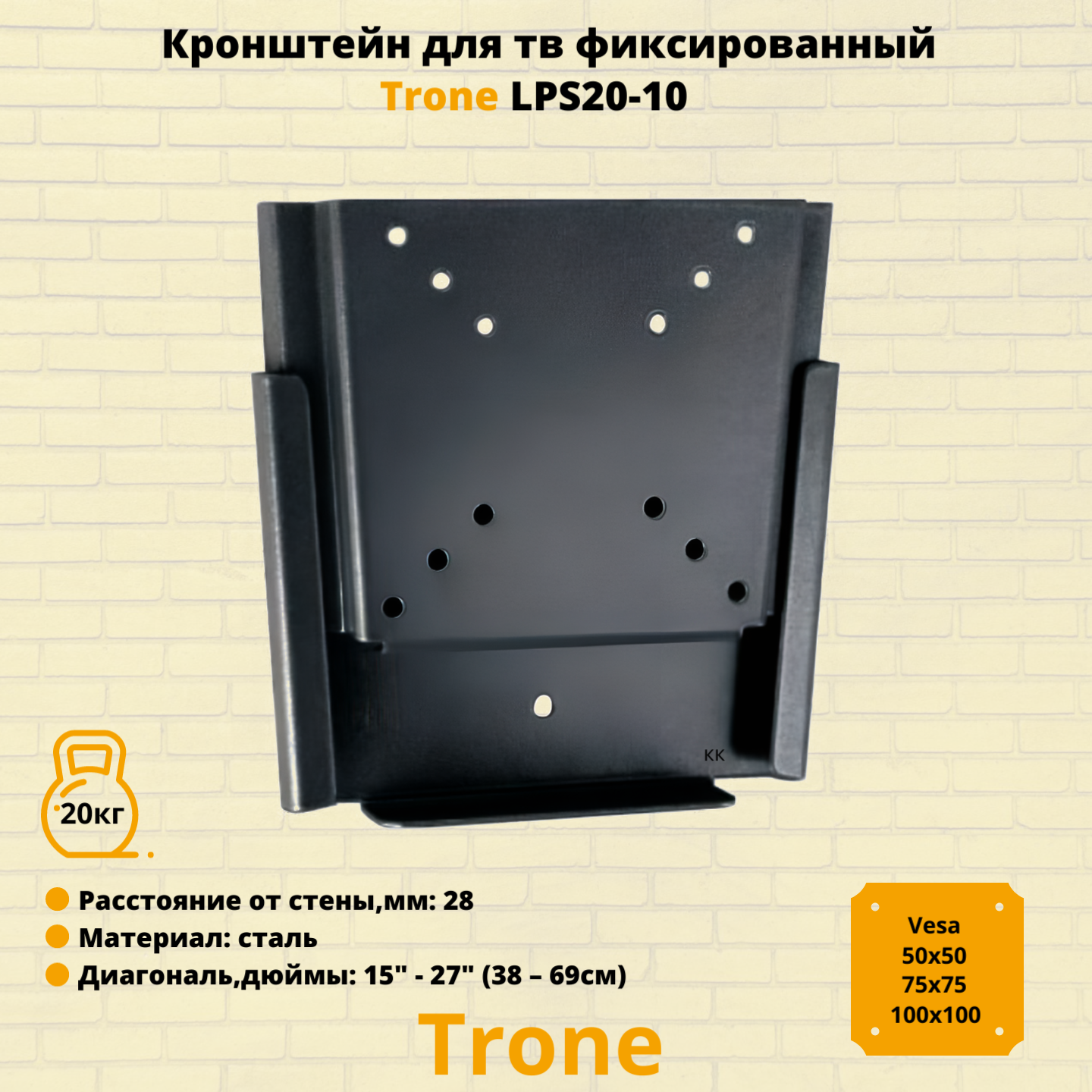 Кронштейн TRONE LPS 20-10 LCD, PDP-телев., панелей, мониторов 15-23, фиксир.установка