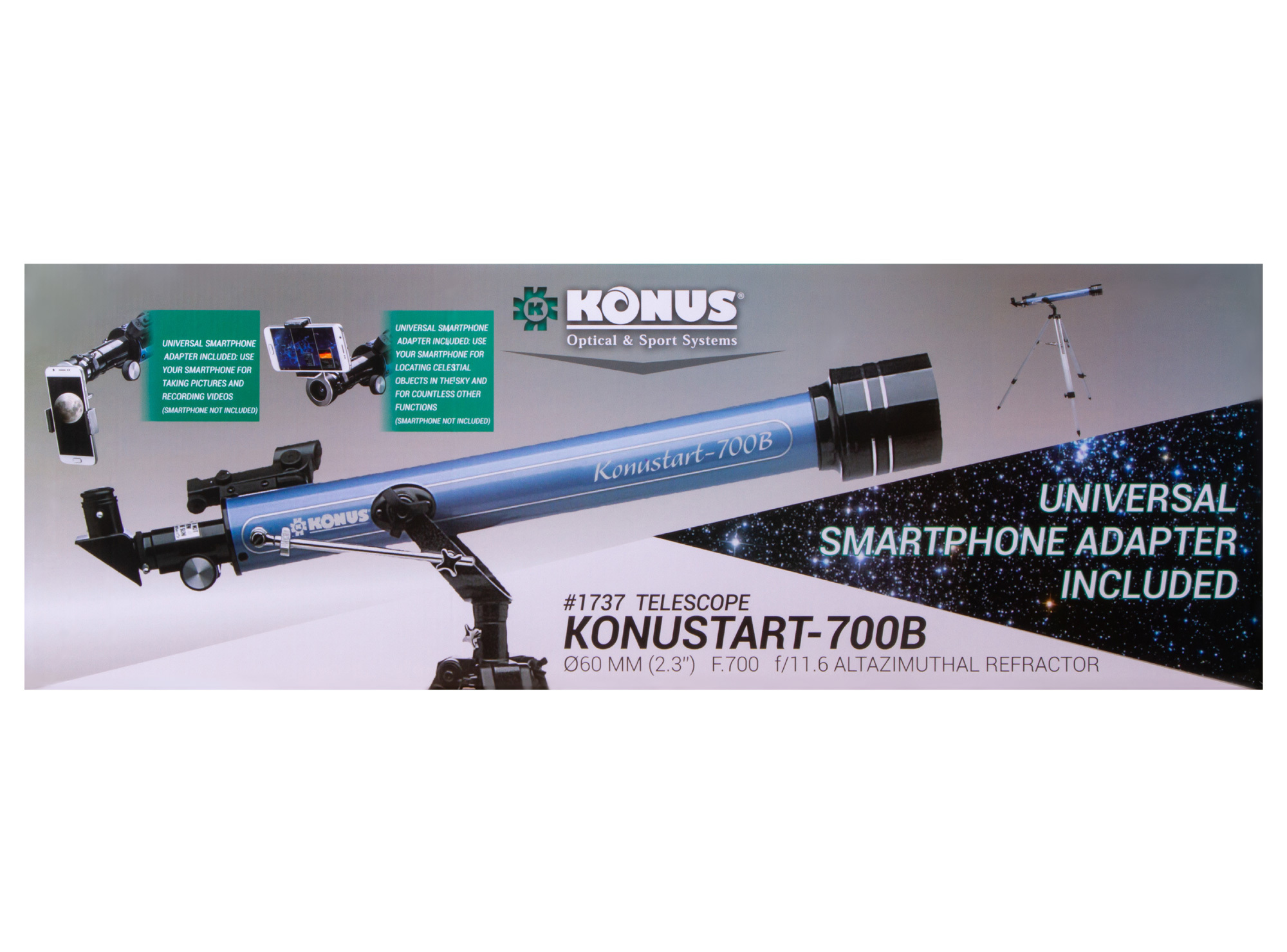 Ниже Вы можете прочитать отзывы на Телескоп Konus Konustart-700B 60/700 AZ, ознакомится с подробными характеристиками, посмотреть интересные обзоры и фотографии на Телескоп Konus Konustart-700B 60/700 AZ.