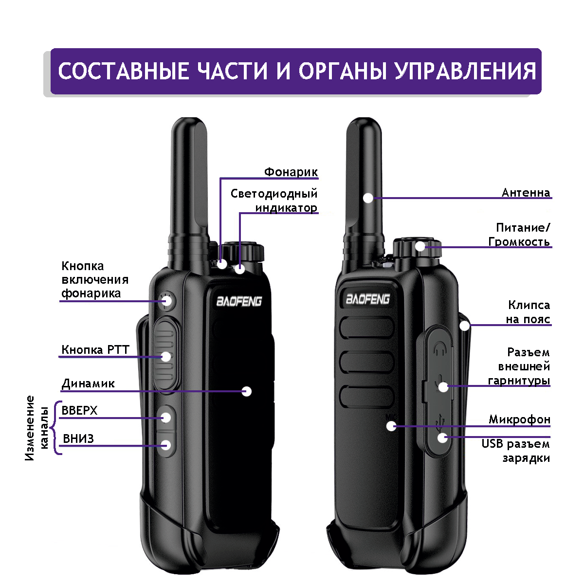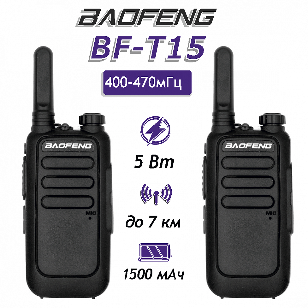 Комплект раций Baofeng BF-T15 2 шт. черный интересное: