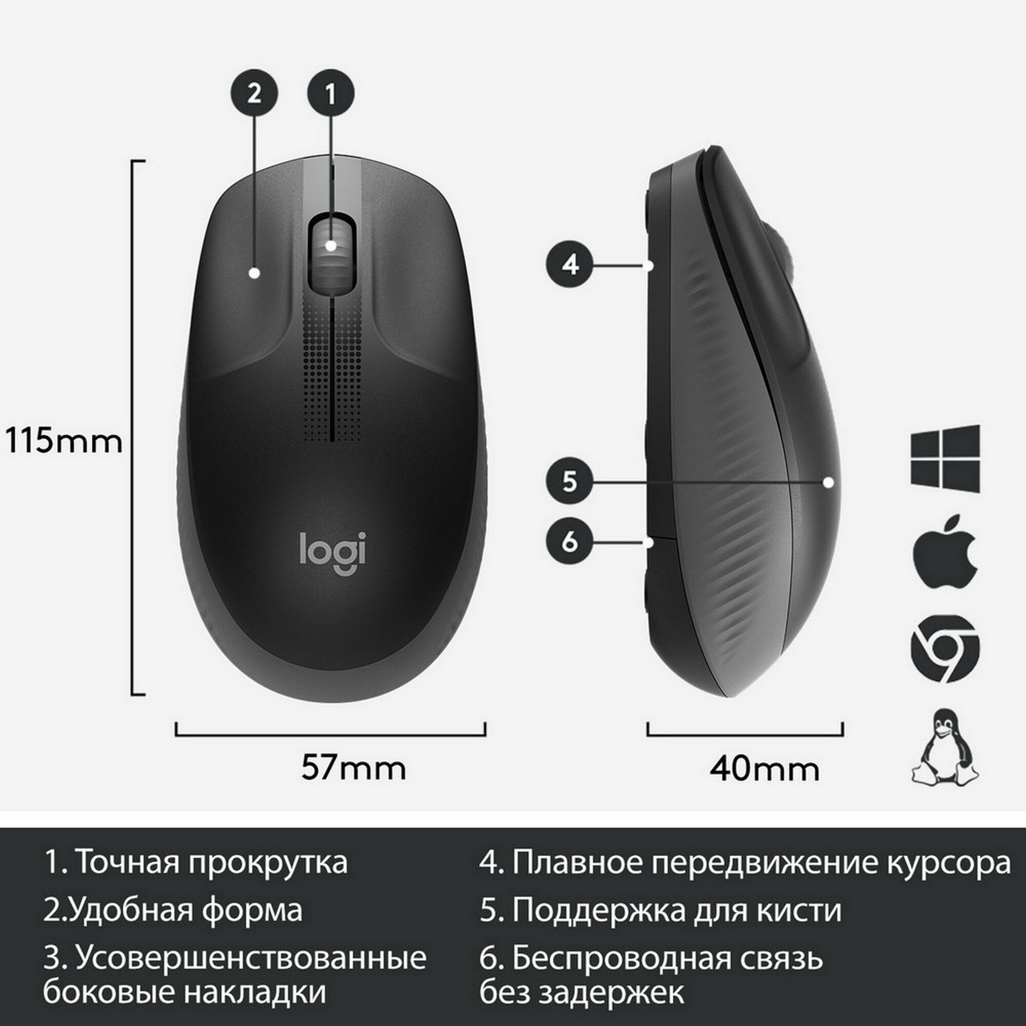 Ниже Вы можете прочитать отзывы на Беспроводная мышь Logitech M190, темно-серый, ознакомится с подробными характеристиками, посмотреть интересные обзоры и фотографии на Беспроводная мышь Logitech M190, темно-серый.