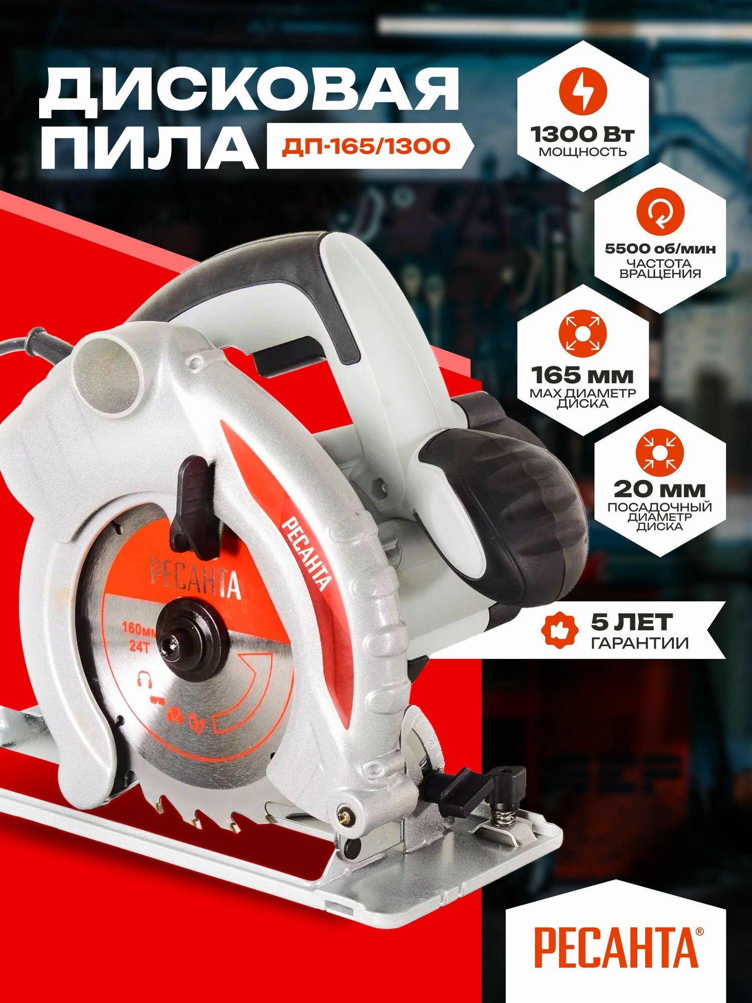 Пила циркулярная Ресанта ДП-165/1300, 1300 Вт, 165 мм