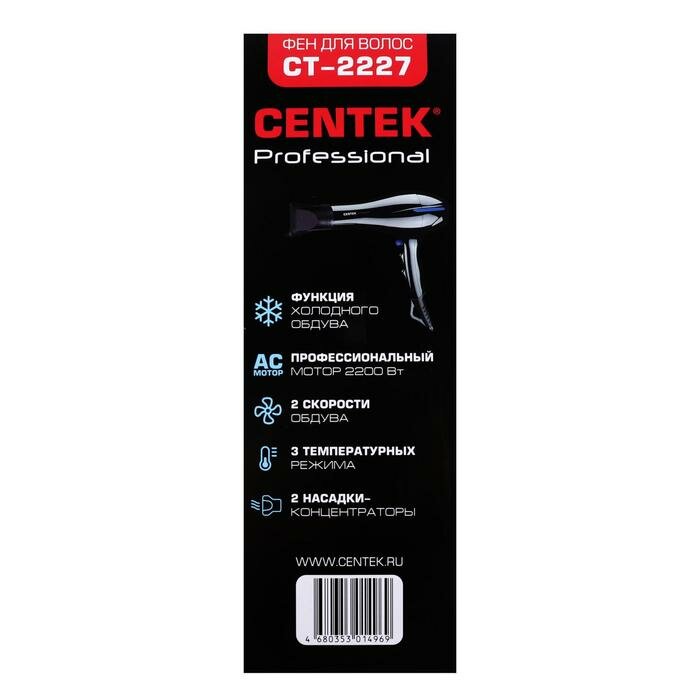 Ниже Вы можете прочитать отзывы на Фен Centek CT-2227, ознакомится с подробными характеристиками, посмотреть интересные обзоры и фотографии на Фен Centek CT-2227.