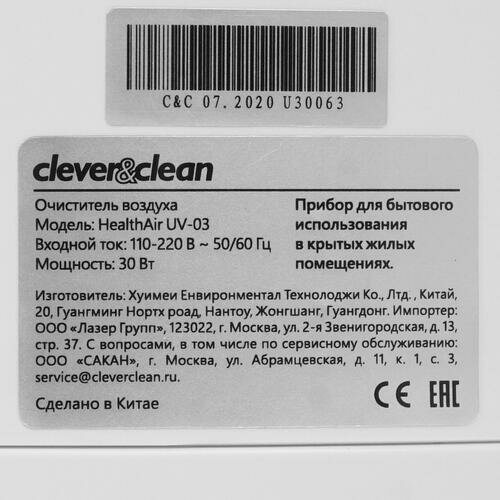 Clever&Clean Очиститель воздуха Clever Clean HealthAir UV-03