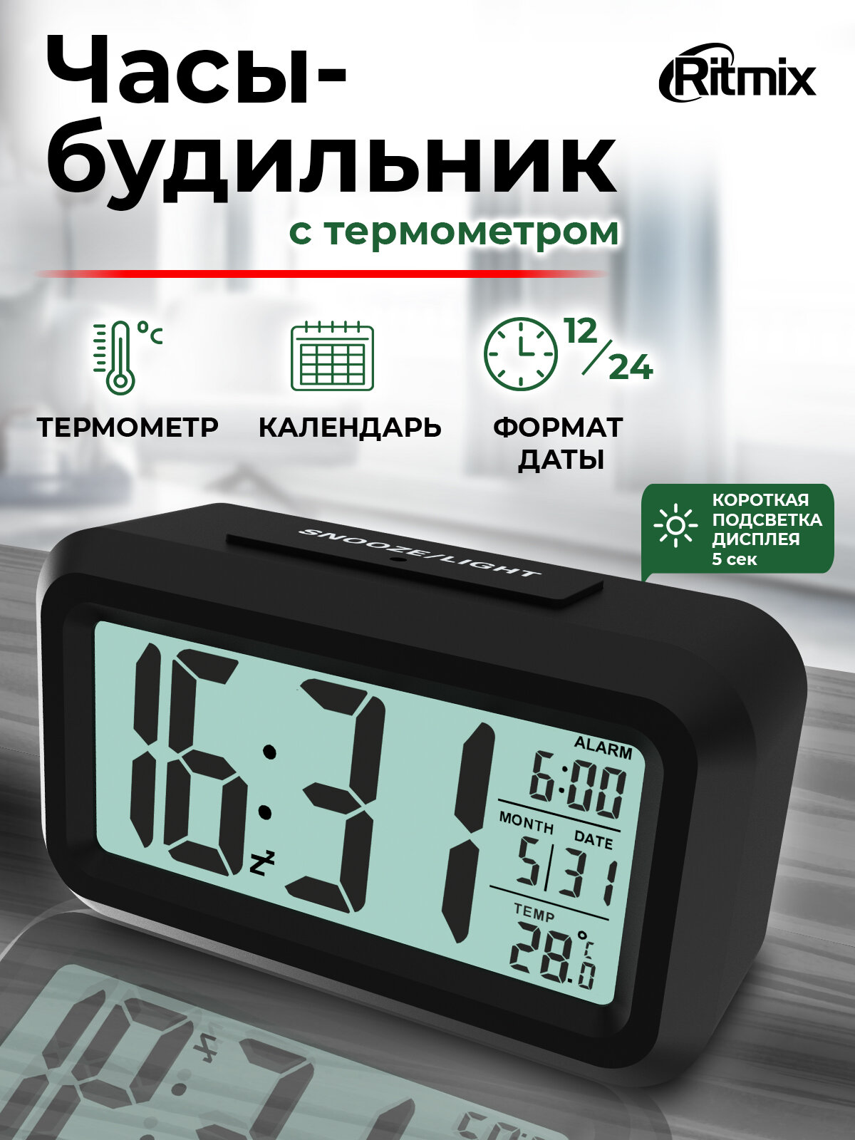 Цифровые часы-будильник RITMIX CAT-100, чёрные