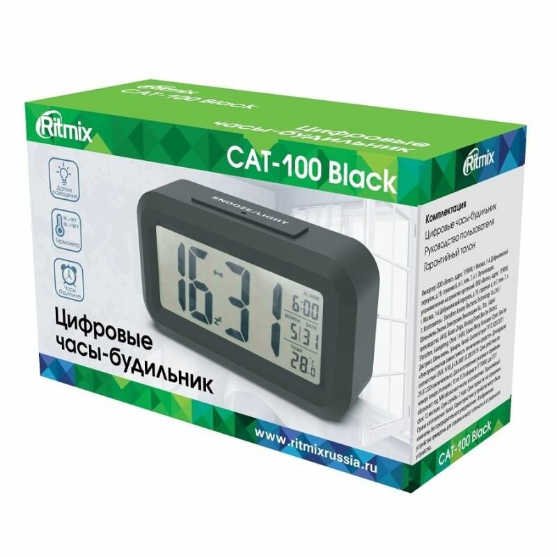 Будильник без радио Ritmix CAT-100 BLACK, черный