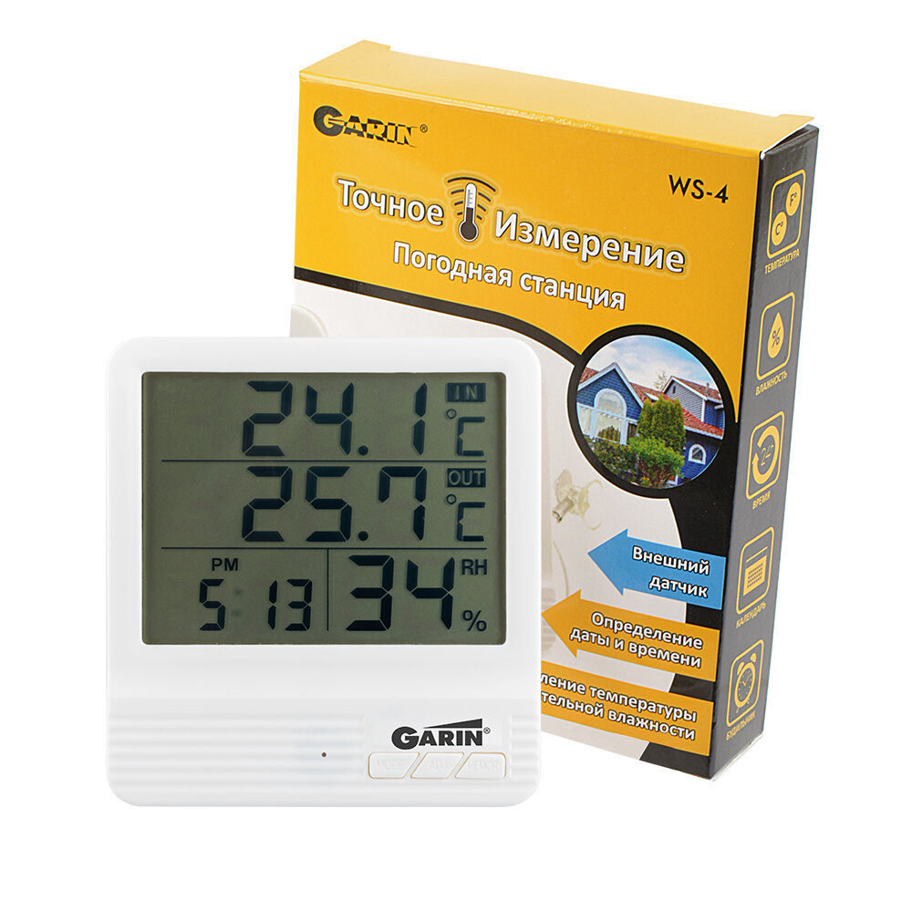Купить Метеостанция GARIN Точное Измерение WS-4 термометр-гигрометр-часы-календарь с внешним датчиком