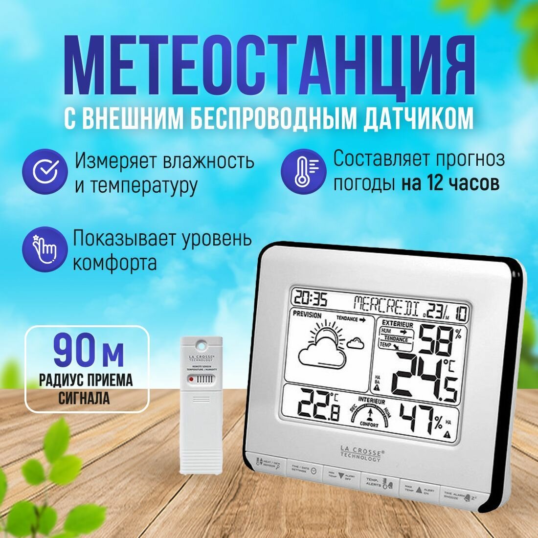 Метеостанция SOVANCI, беспроводная, с датчиком, с часами, белая