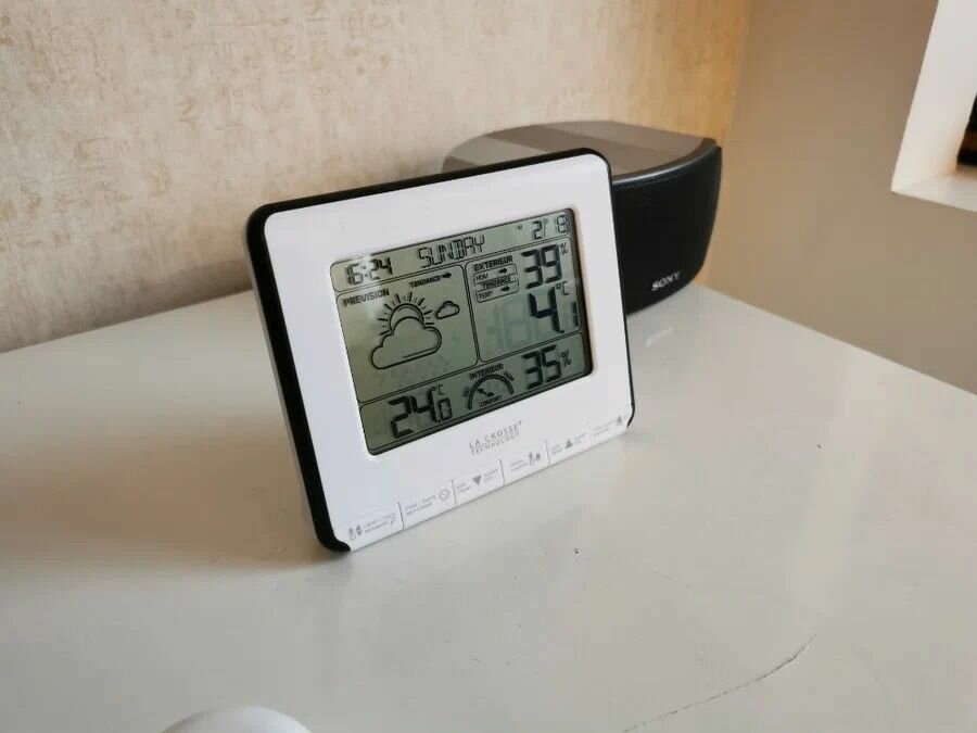 Угол обзора не очень. Перевод неполный. Включил английский, дни недели нормально, а остальное на французском. Upd: прошло ещё 2 часа. Температура 3,2. За окном -1... Upd: на следующее утро показывает 3,9. Ртутный градусник за окном показывает 1 градус. Похоже буду делать возврат... Upd: за время использования показывал 3.9-4 градуса на улице, в то время, как ртутный показывал 1 градус. Решил протестить на холодильнике (сигнал проходит). В морозилке выставлено -15. Закинул датчик, температура показала спустя час -10.1. В самом холодильнике -5. Показал 0 градусов. Что и требовалось доказать. Точность мёртвая. Буду делать возврат |