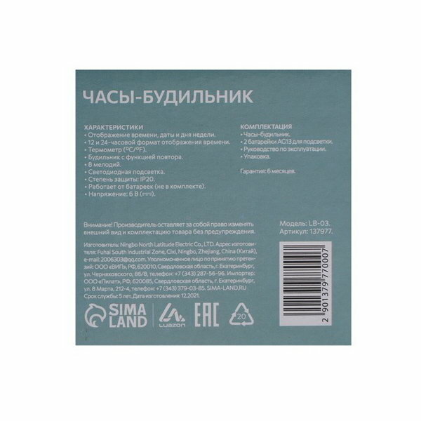 Luazon Home LB-03 Будильник 137977 .
