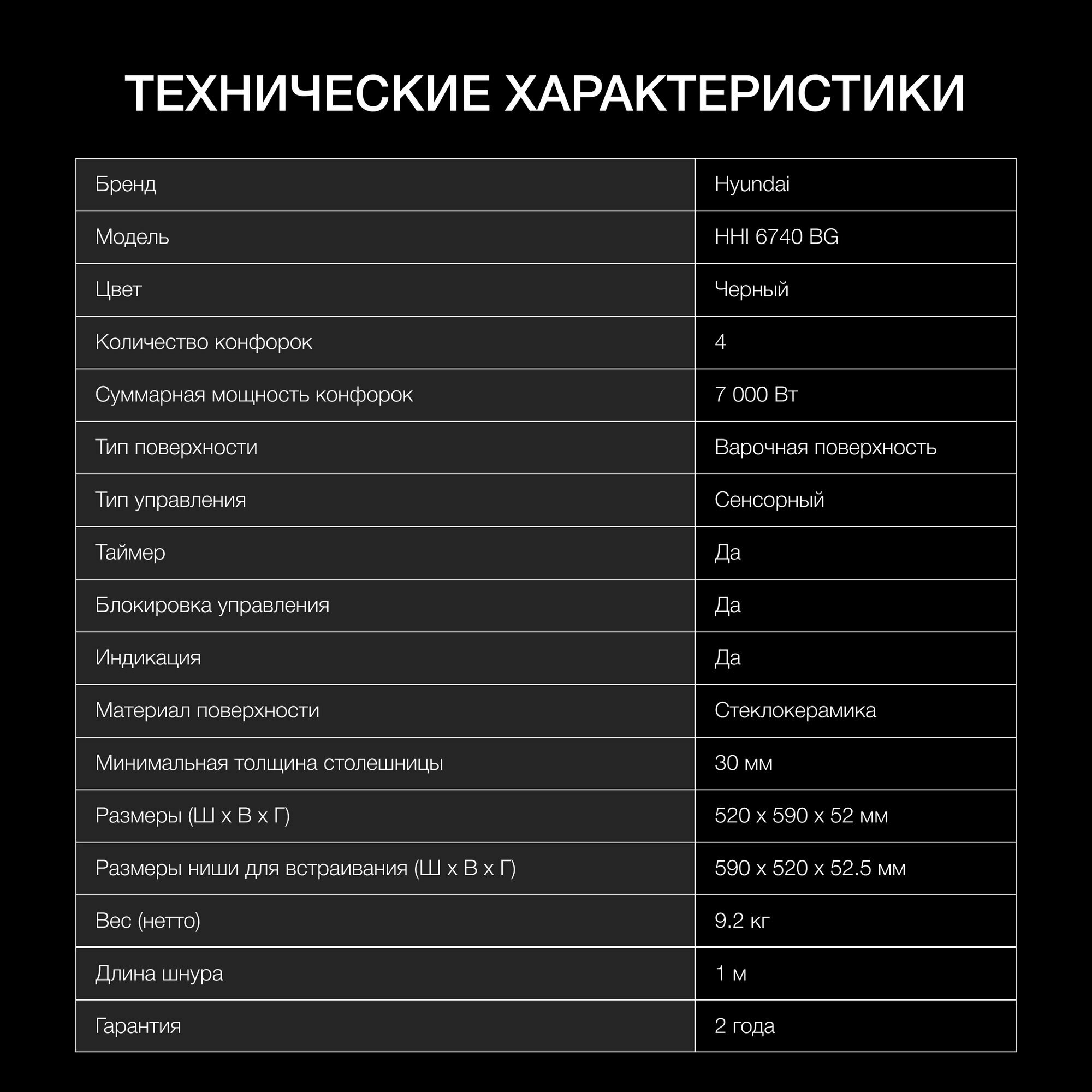 Варочная панель Hyundai HHI 6740 BG (Цвет: Black)