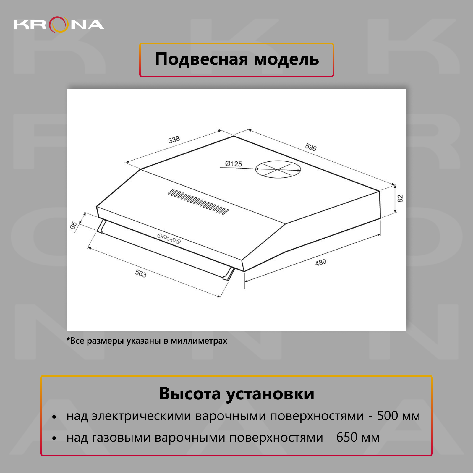 Вытяжка подвесная KRONA ERMINA 600 PB inox