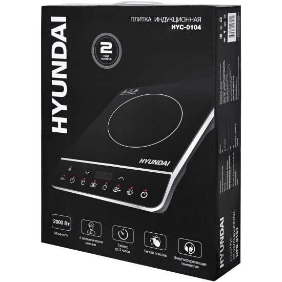 Индукционная плитка, настольная электрическая плита Hyundai HYC-0104 до 20+20 кг 2000Вт