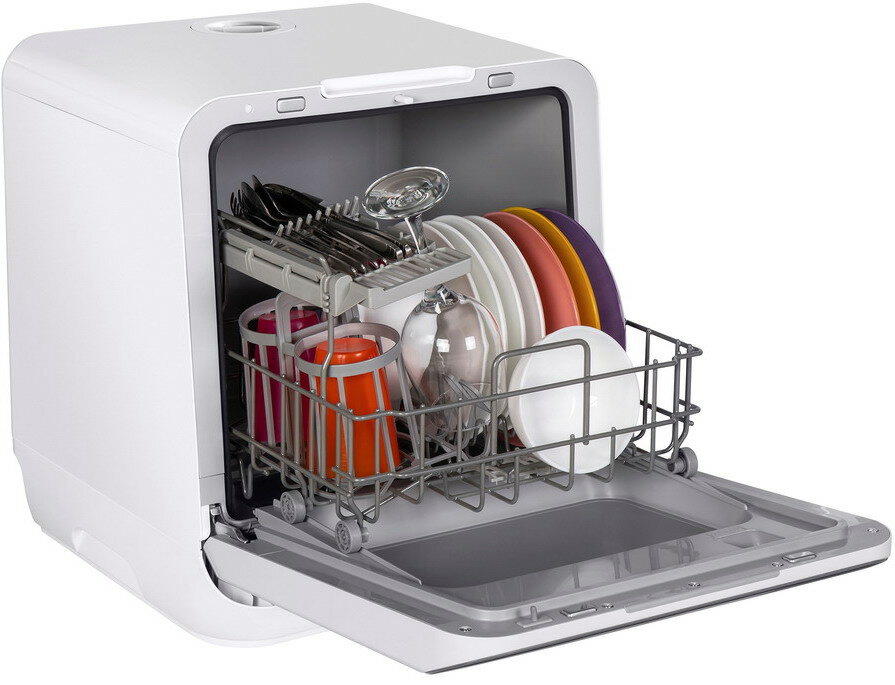 | Плюсы: | независимость от водопровода, 6 программ мойки, компактный размер |