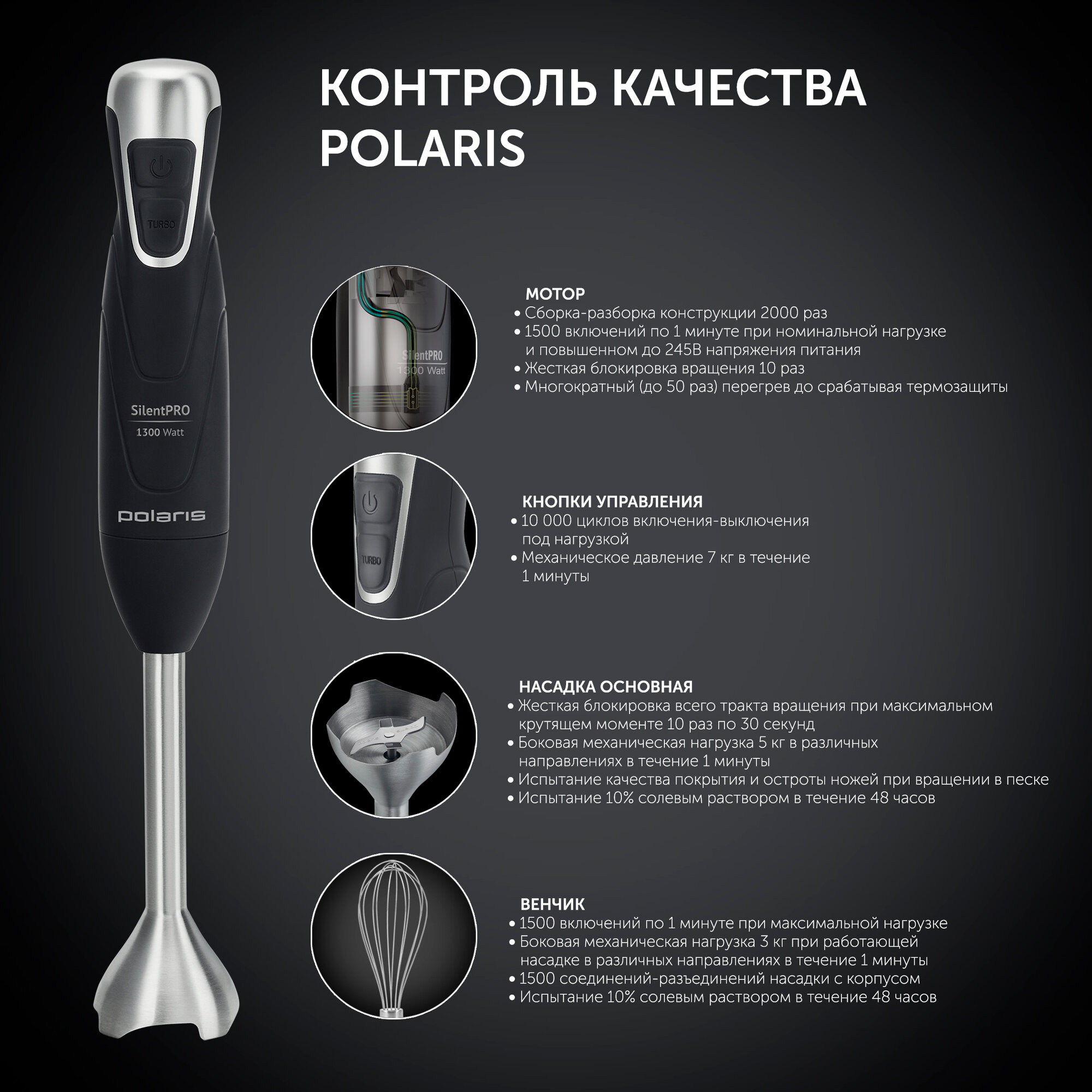 Купить Блендер POLARIS PHB 1379 Silent, погружной, черный/серебристый