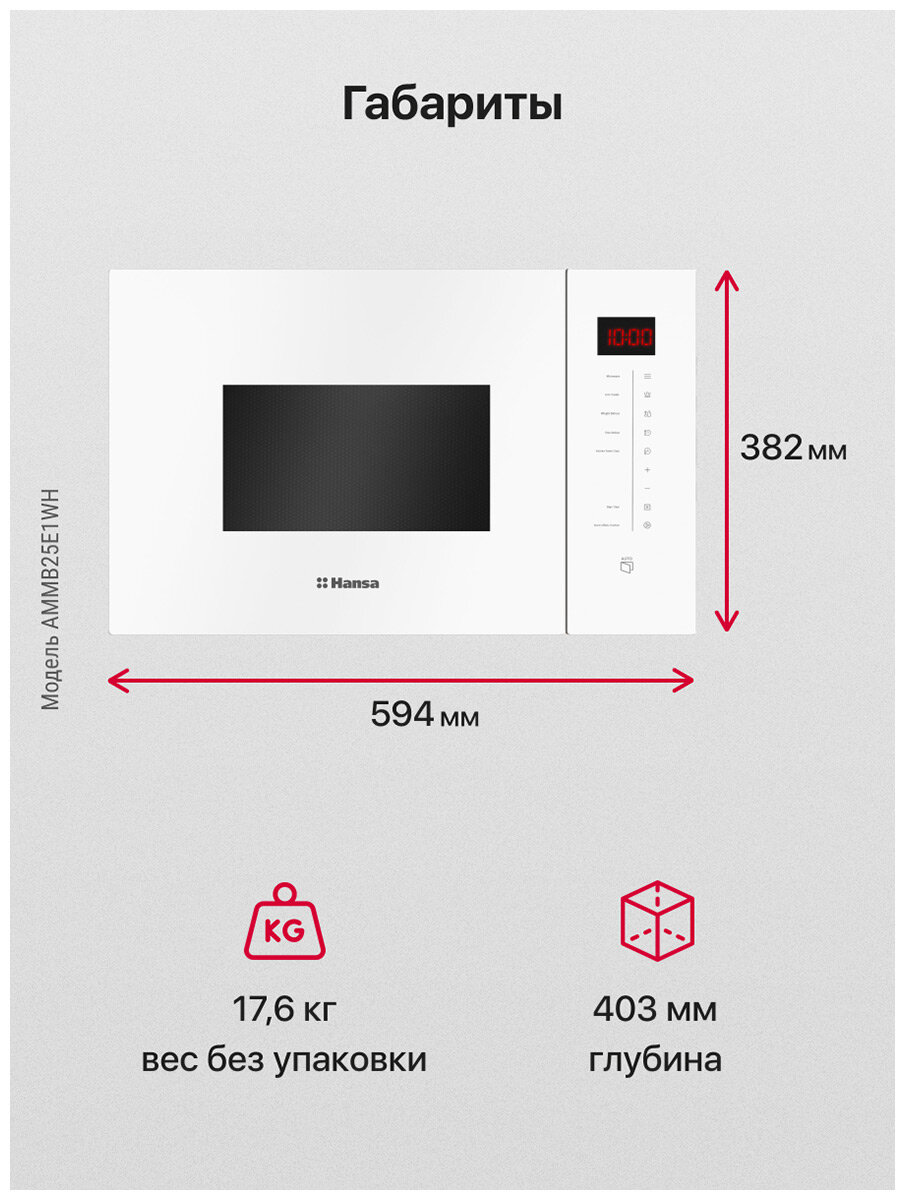 Встраиваемая микроволновая печь СВЧ Hansa AMMB25E1WH белый интересное: