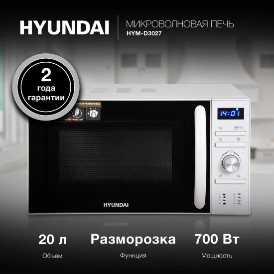 Микроволновая Печь Hyundai HYM-D3027 20л. 700Вт белый интересное:
