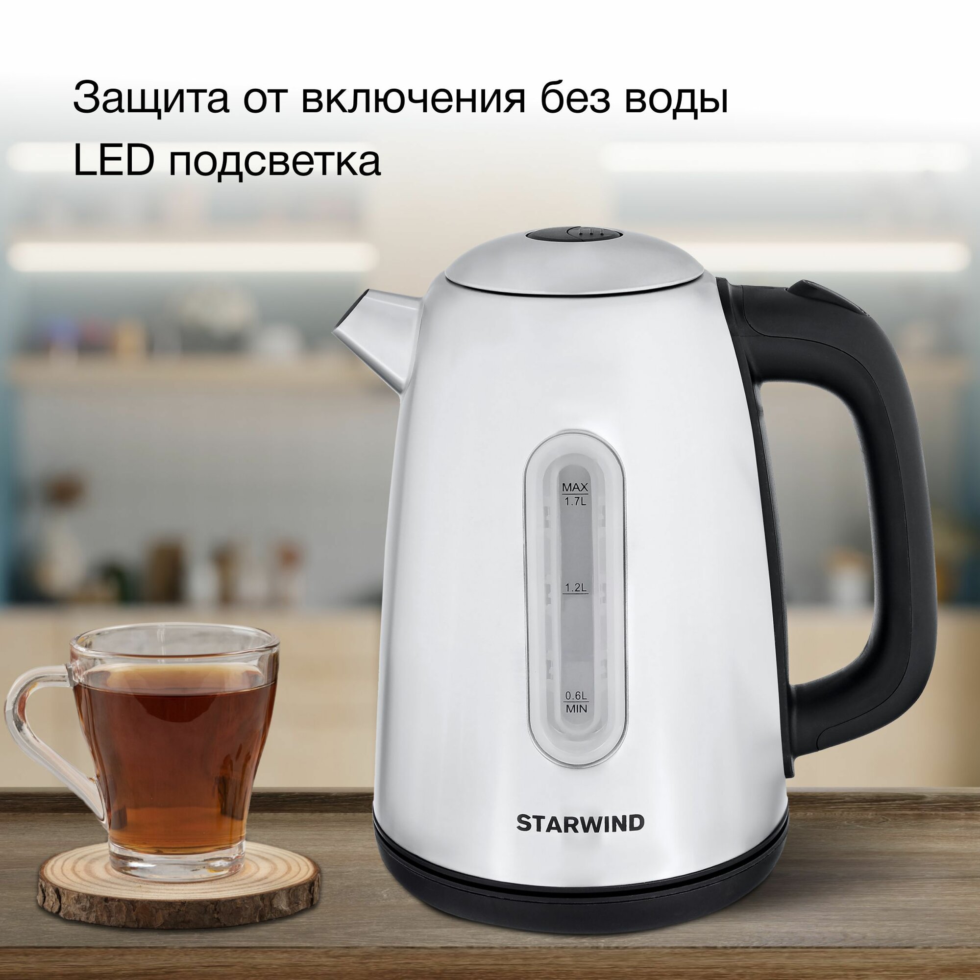 Чайник электрический Starwind SKS3210, 1.7 л., серебристый металл