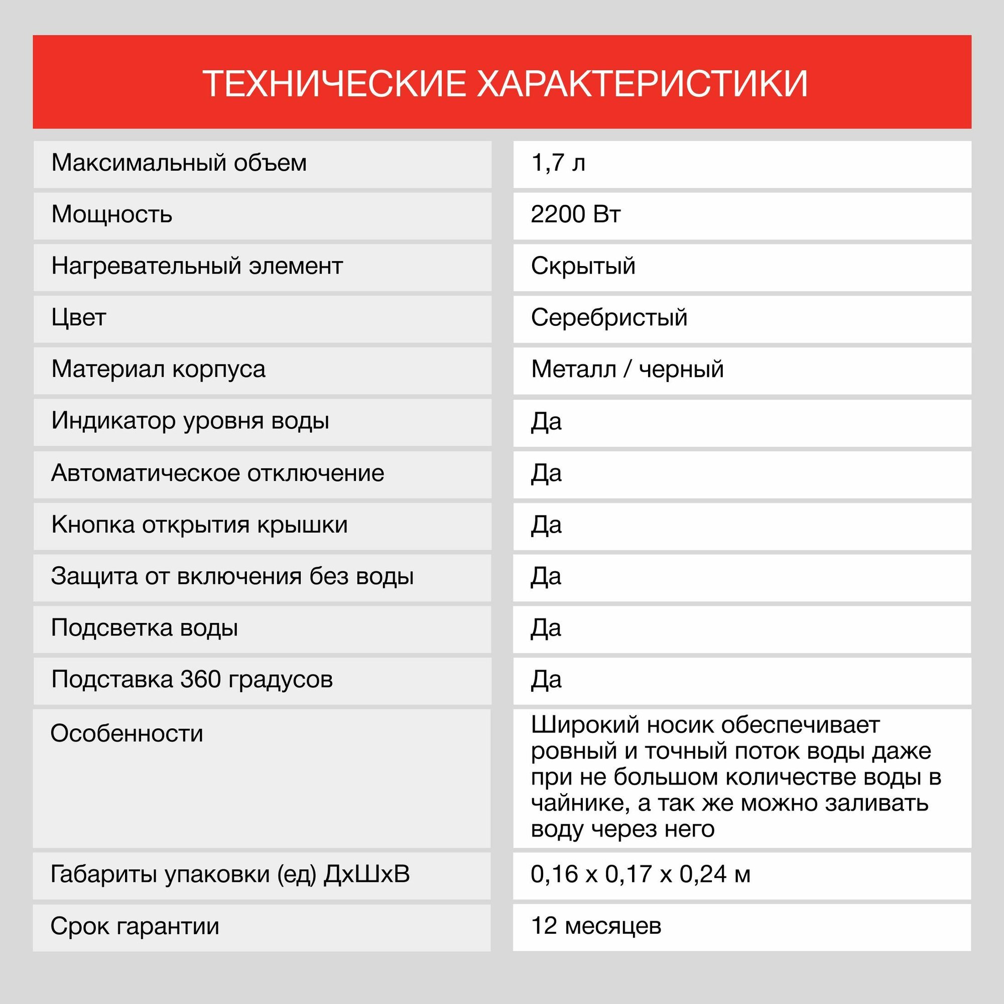 | Блокировка включения без воды | есть |