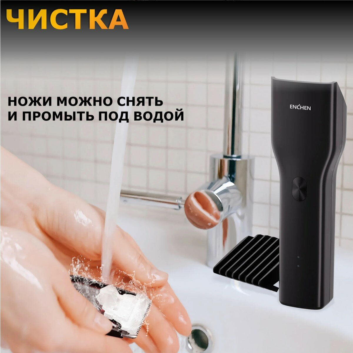 Машинка для стрижки волос и бороды, триммер для волос Enchen Boost / Профессиональная беспроводная машинка мужская электробритва, черный
