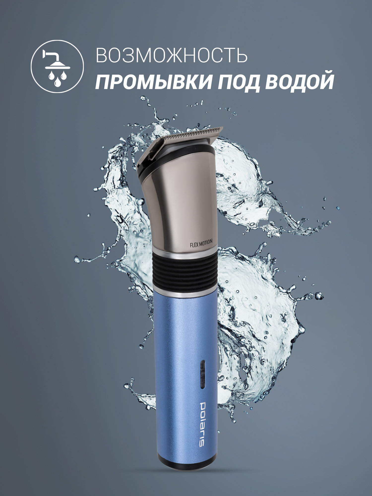 Триммер для волос Polaris PHC 0401RB Flex Motion, Голубой/металлик