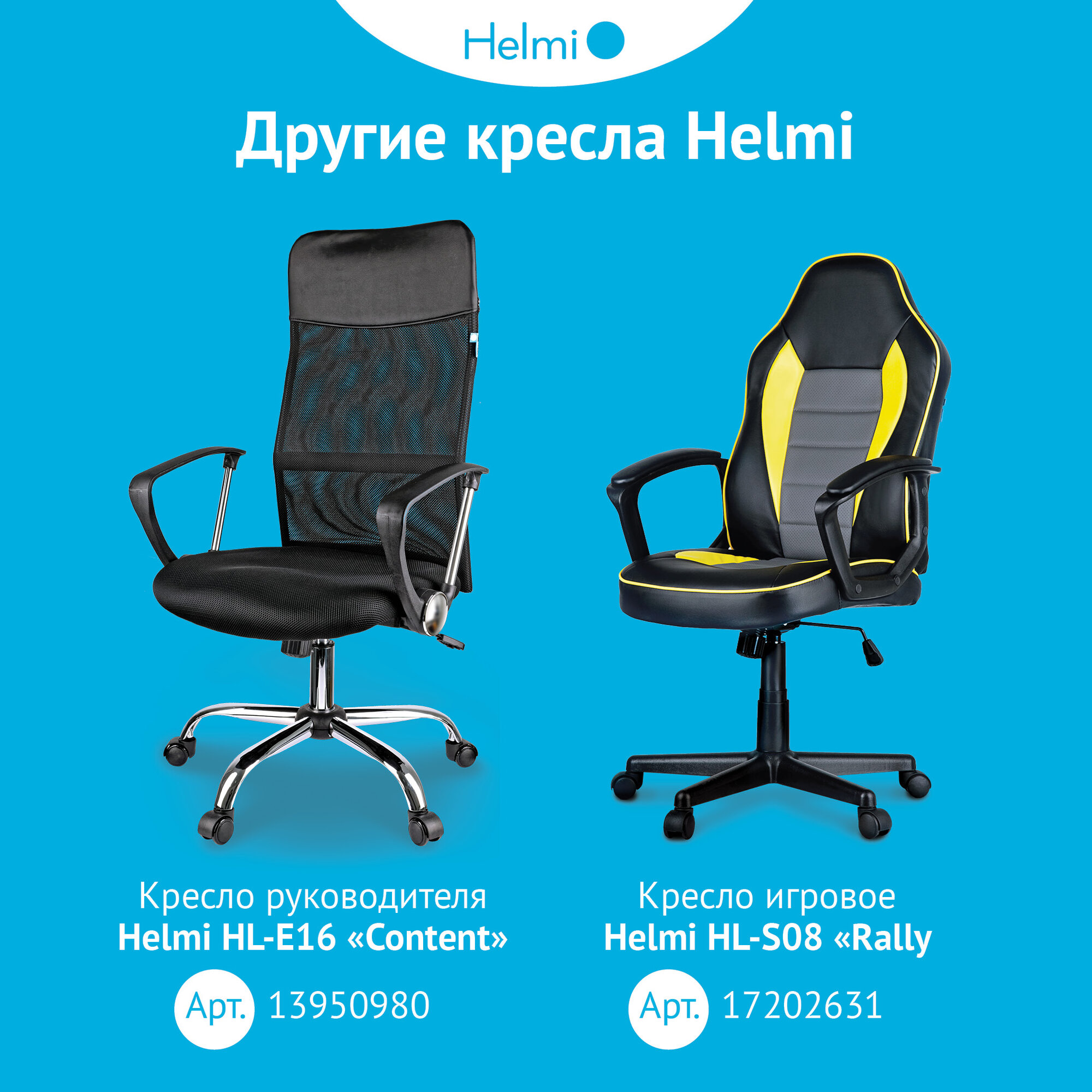 Кресло компьютерное Helmi HL-E16 "Content", игровое, офисное из экокожи / с колесиками, подлокотниками, газлифтом