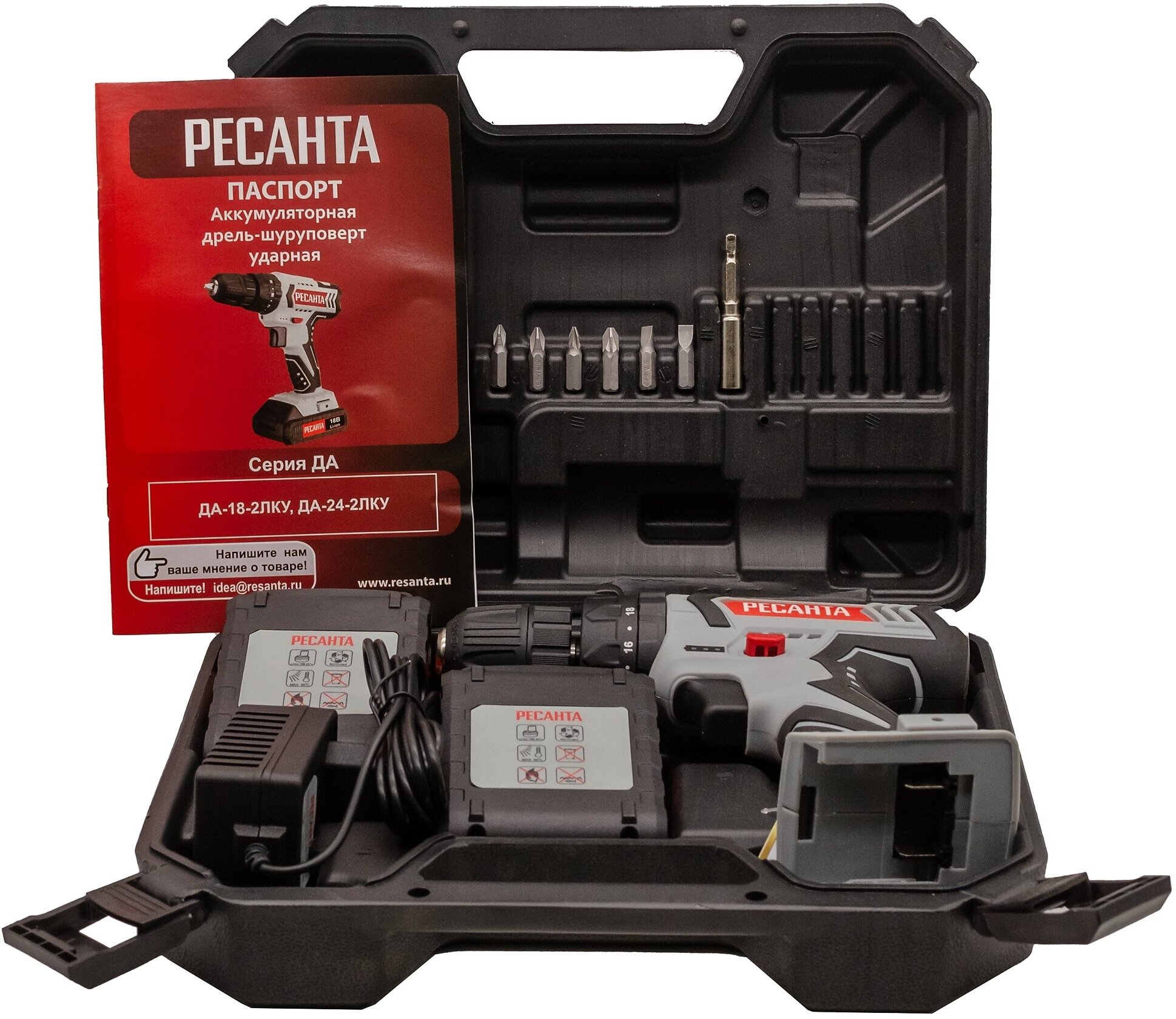 Ударная дрель-шуруповерт РЕСАНТА ДА-18-2ЛК-У, 2Ач, с двумя аккумуляторами [75/14/6]