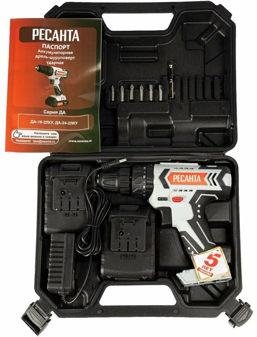 Дрель-шуруповерт аккумуляторная Ресанта ДА-18-2ЛК-У, 18 В, 2 x 2 Ач, Li-Ion, ЗУ