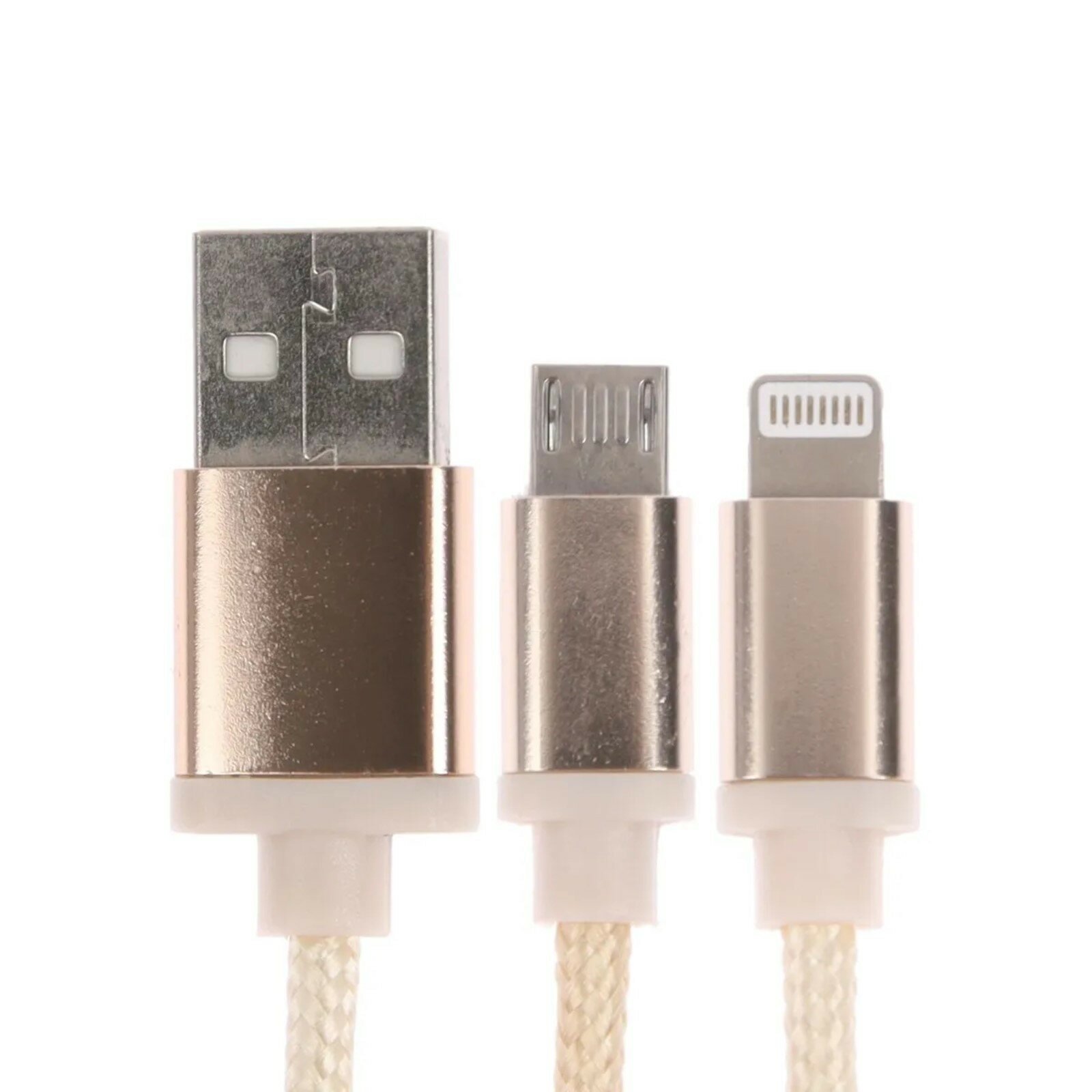 Кабель 2 в 1 Luazon, microUSB/Lightning - USB, 1 А, в виде брелка, золотистый