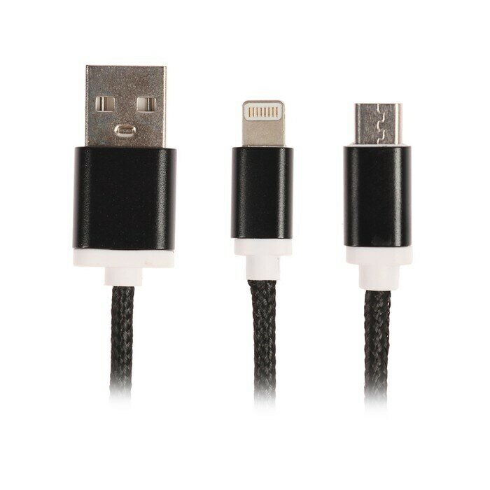 Кабель 2 в 1 LuazON. microUSB/Lightning - USB. 1 А. в виде брелка. черный 2502717