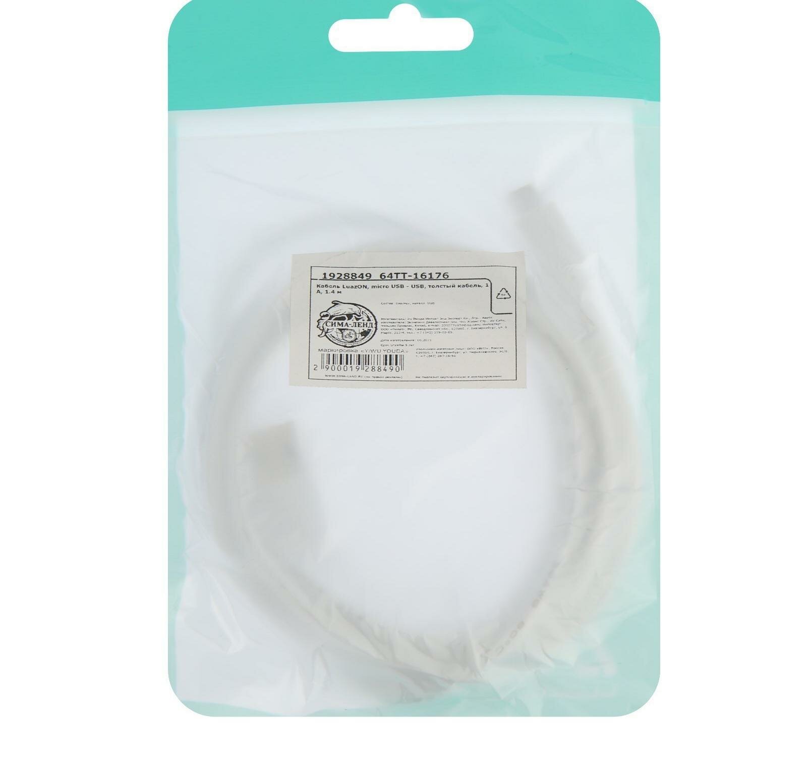 Кабель LuazON, microUSB - USB, 1 А, 1.5 м, утолщенный, белый интересное: