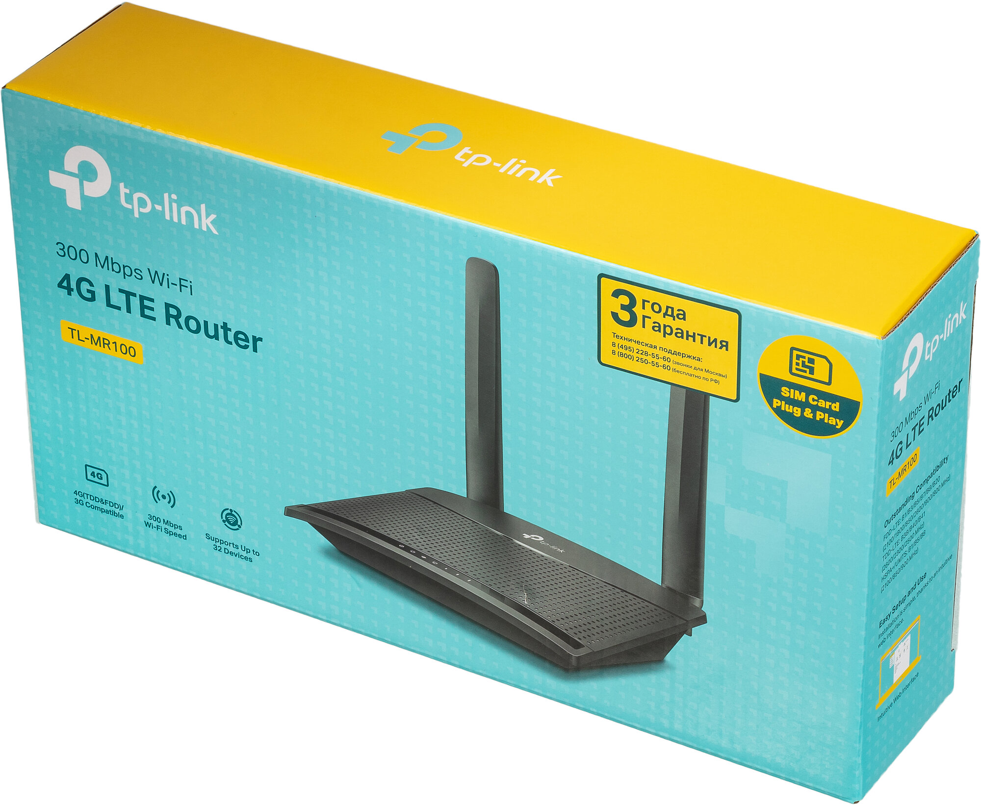 Wi-Fi роутер TP-LINK TL-MR100, N300, черный
