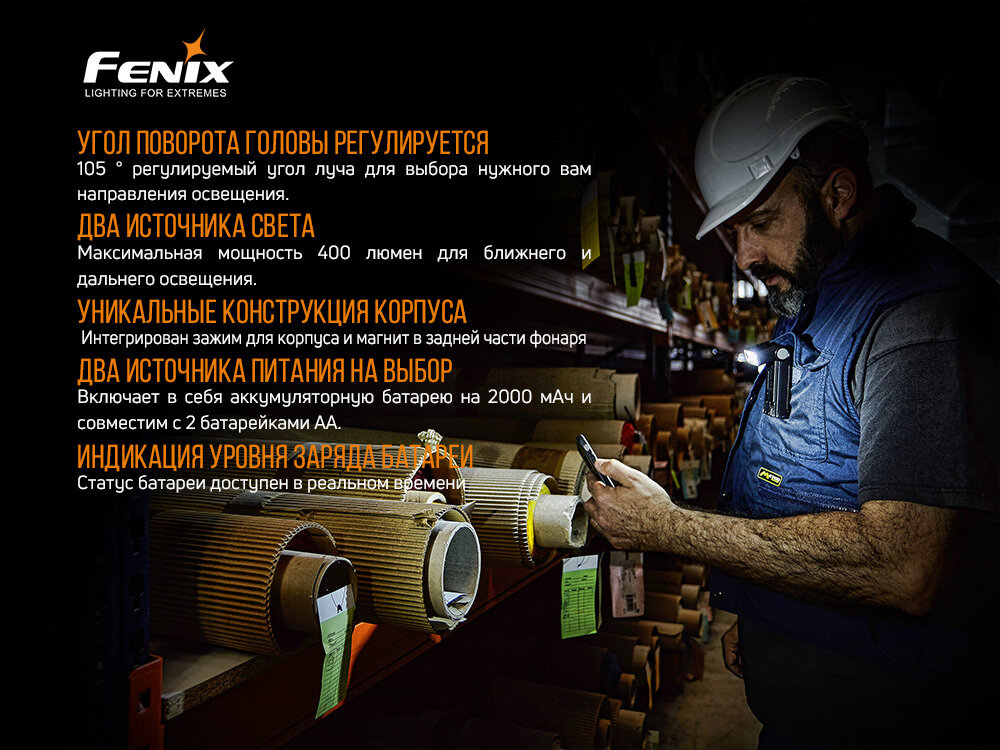 Фонарь светодиодный Fenix WT20R, 400 лм, аккумулятор интересное: