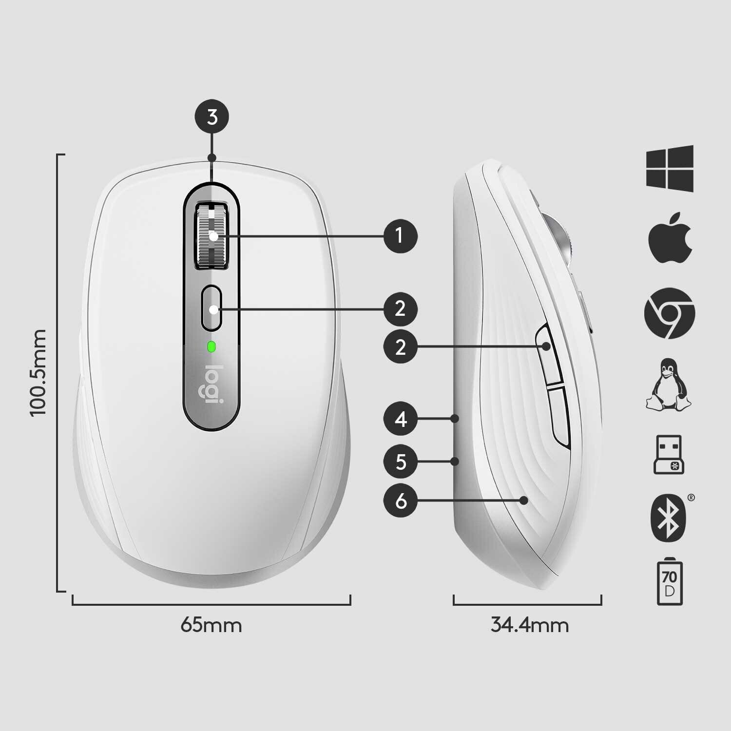 Ниже Вы можете прочитать отзывы на Беспроводная компактная мышь Logitech MX Anywhere 3, светло-серый, ознакомится с подробными характеристиками, посмотреть интересные обзоры и фотографии на Беспроводная компактная мышь Logitech MX Anywhere 3, светло-серый.