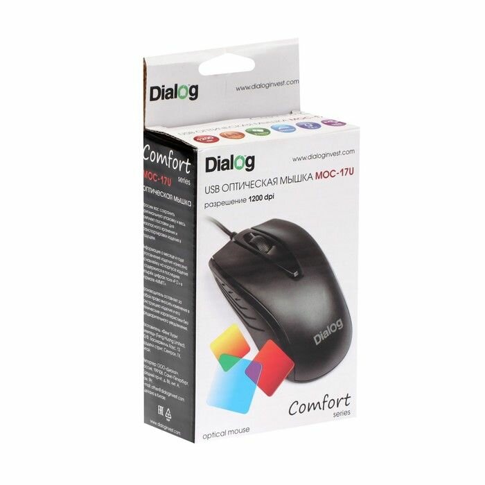 Мышь Dialog Moc-17u Comfort Optical, проводная, оптическая, 3 кнопки, 1200 dpi, Usb, чёрная Dialog 9 .