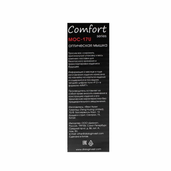 Мышь оптическая Dialog Comfort MOC-17U. Черный