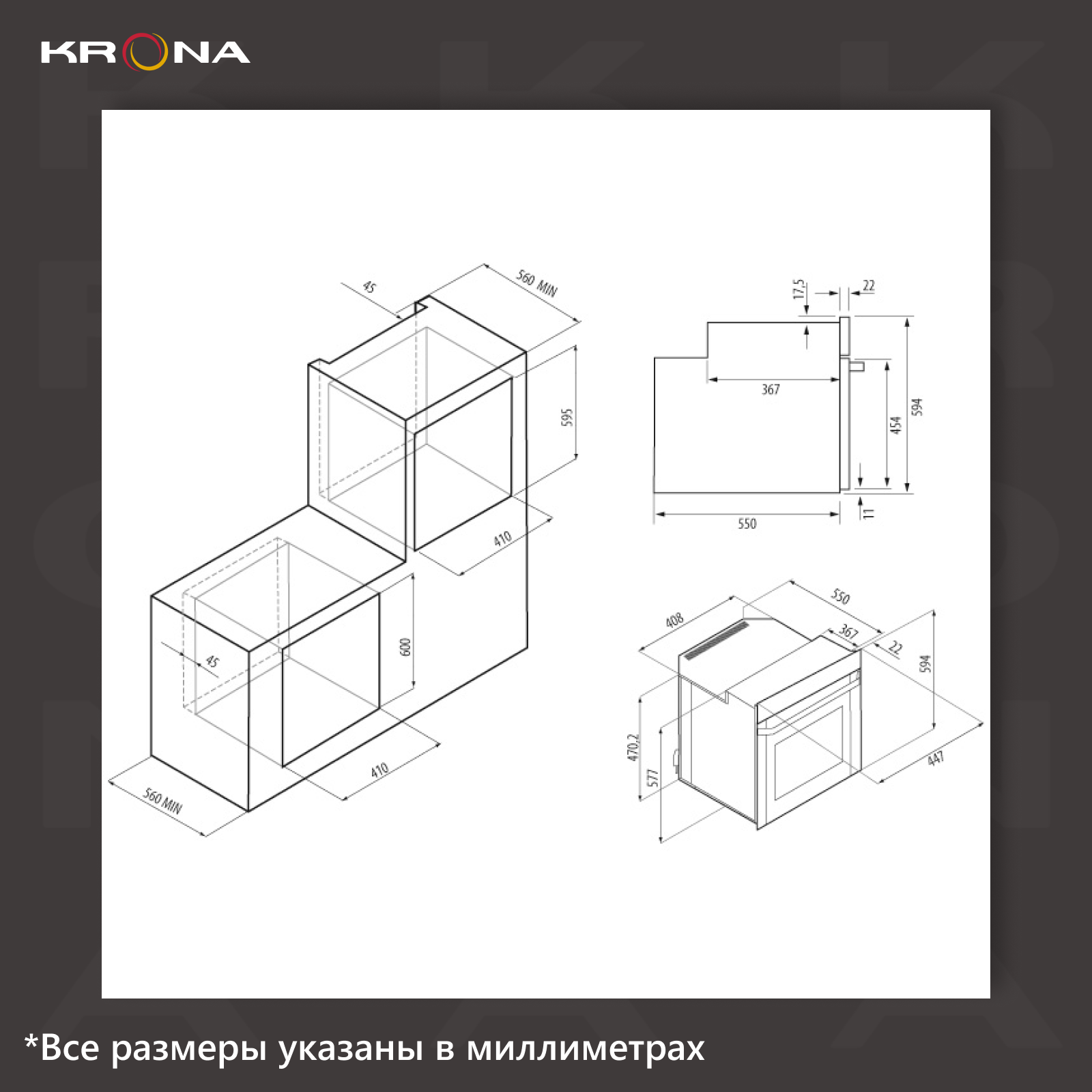 Духовой шкаф Krona SONATA 45 BL 570x447x591