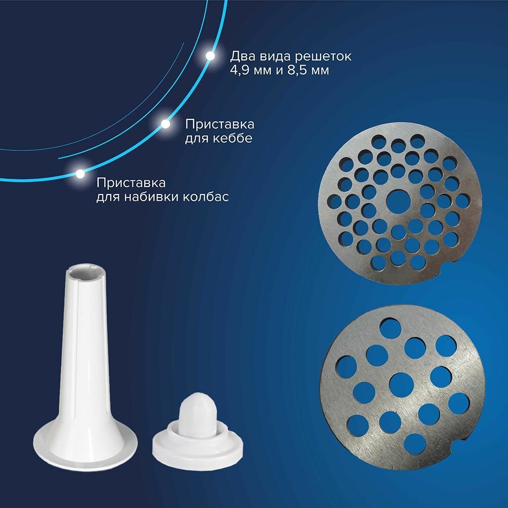 | Диск для фарша | 2 в комплекте, диаметр отверстий 4.9 мм, 8.5 мм |