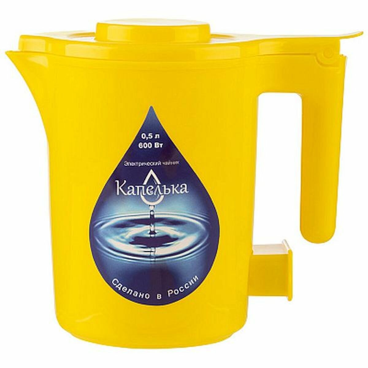 --- Чайник электрический "Капелька", пластик, 0.5 л, 600 Вт, желтый