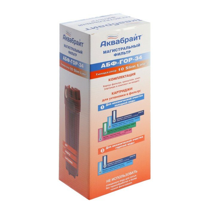 Фильтр аквабрайт АБФ-ГОР-34 SlimLine 10 магистральный для горячей и холодной воды из усиленного пропилена