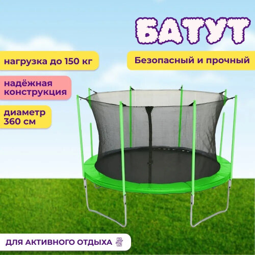 Уличный батут капризун с внутренней сеткой 360 см зеленый
