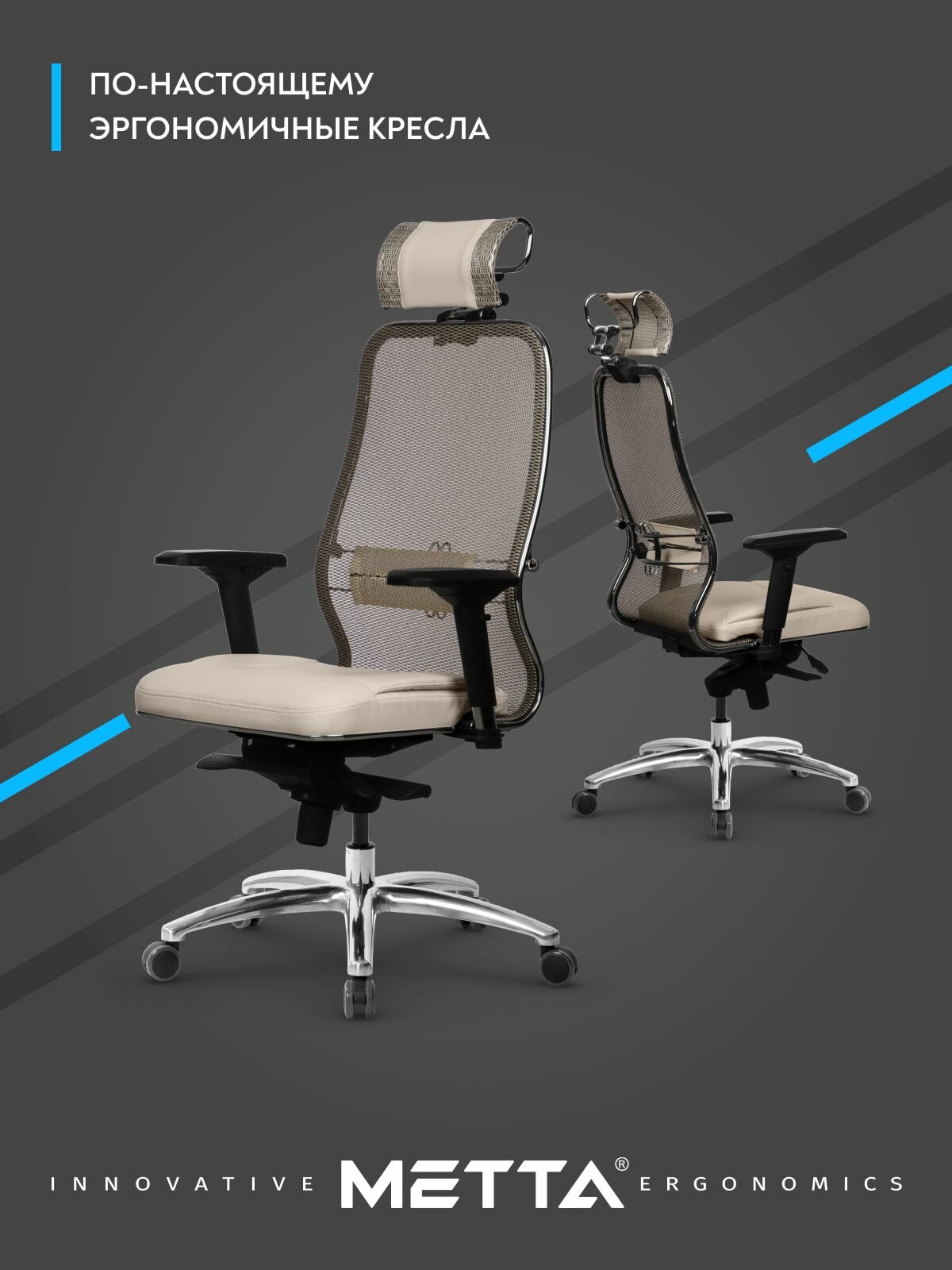 Компьютерное кресло METTA Samurai SL-3.04 для руководителя, обивка: сетка/искусственная кожа, цвет: бежевый