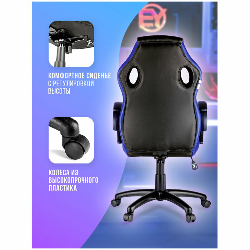 Кресло игровое Helmi "Boost", экокожа, ткань черная, синяя (279721)